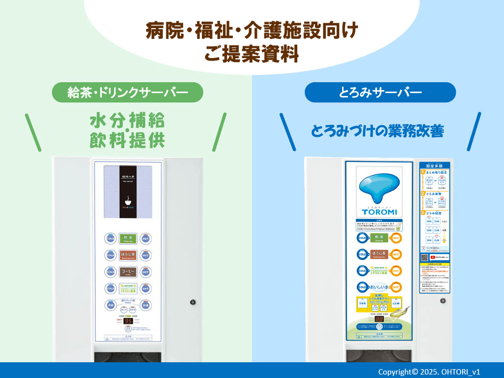 病院・福祉・介護施設向けに最適な給茶機やとろみサーバーをご提案します。